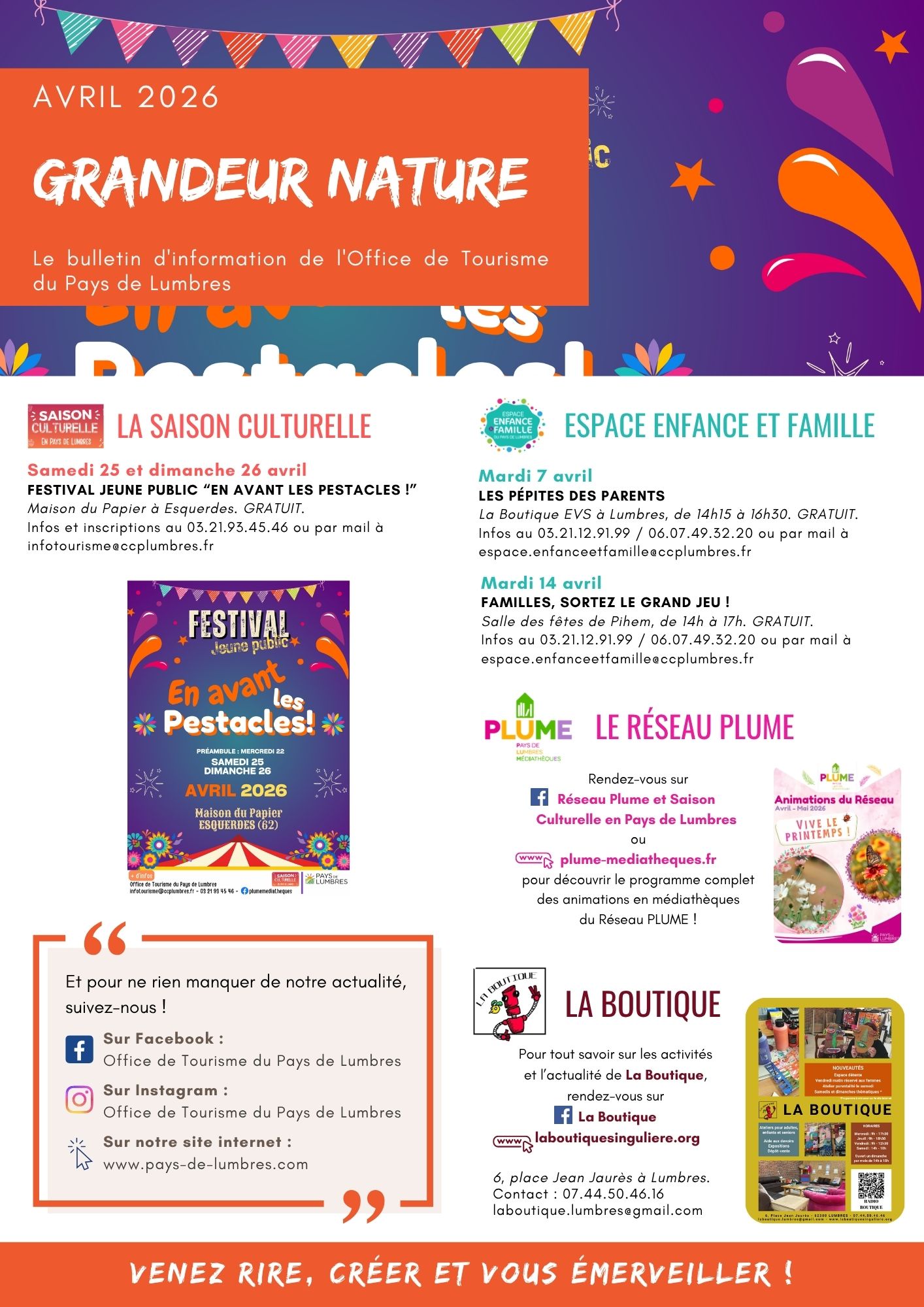 En avril, toute l’actualité du Pays de Lumbres est à retrouver dans votre newsletter : idées de sorties et services du quotidien pour bien profiter du retour du printemps.