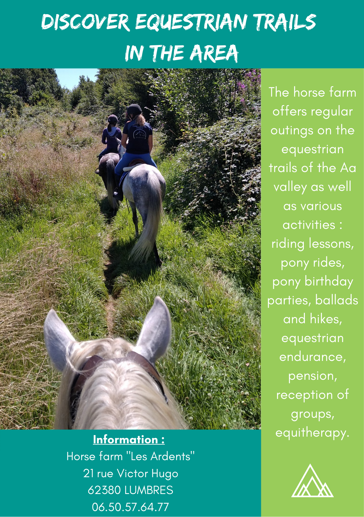 With a wide variety of landscapes (valley, plateau, meadows, rivers and forests), we invite riders of all ages to discover the diversity of our territory.